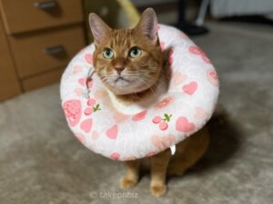 ちょっと外用薬を塗ってしばらくカラーを着けてもらったのですが、カラーを着けた姿は久しぶり。