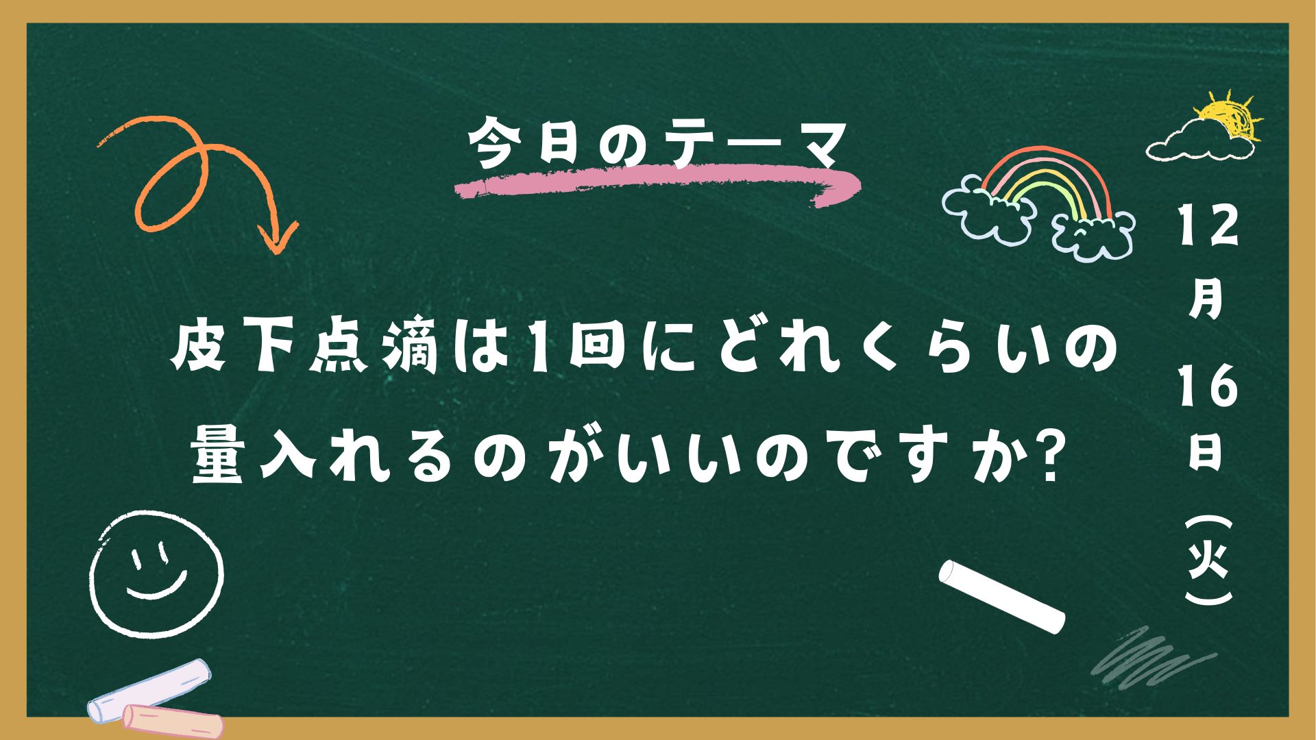 我が家の場合、2~3日ごとに通院時に300mlの皮下点滴を行っていましたが、どうしても通院前には脱水していました。脱水が進むと腎臓にも悪影響があります。脱水しない状態を維持するには、高い頻度の皮下点滴の方が良いのは間違いありません。我が家では、80ml程度の皮下点滴を朝晩の2回に分けて行っていますが、調子は安定しています。